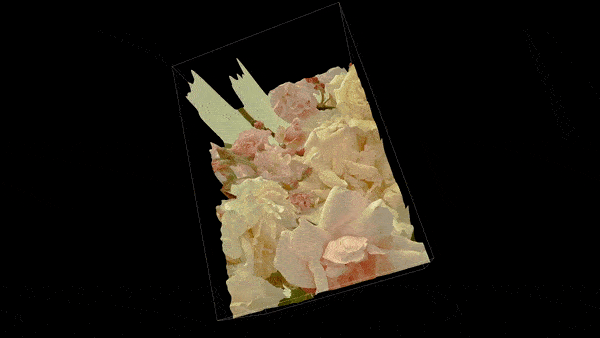 Dimensional illusion is something we play around with a lot in the studio. I'm interested in how we can move through different dimensions with flowers. In this instance working with photographer David Ralph capturing an arrangement in 2D and re-rendering it back into 3D in the digital sphere as a video show here as a grainy animated gif.