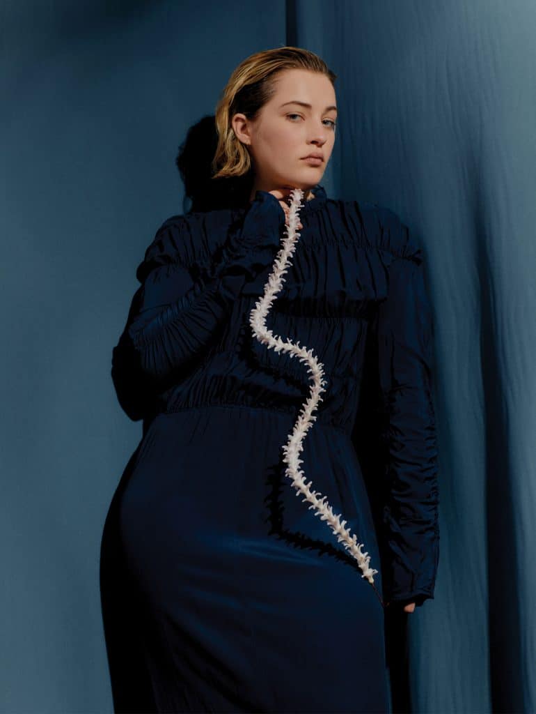 These floral spines are sculptural floral pieces to be worn on the body. These editorial images show Julia's spine contorting on the outside of her body.