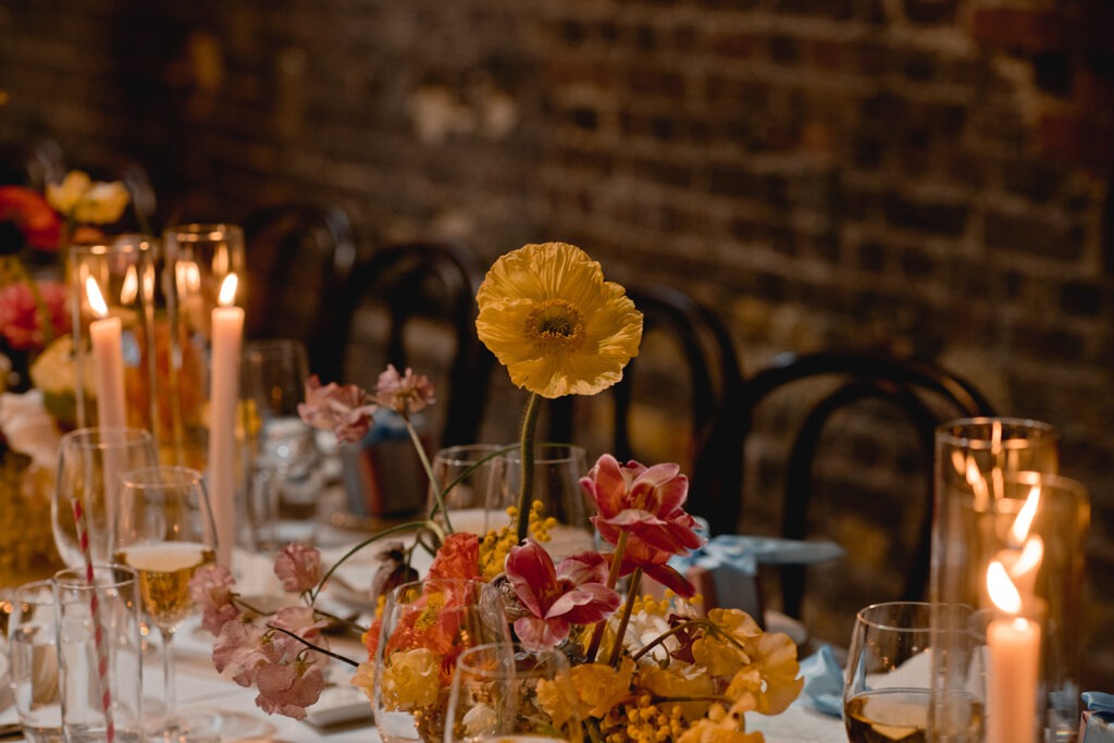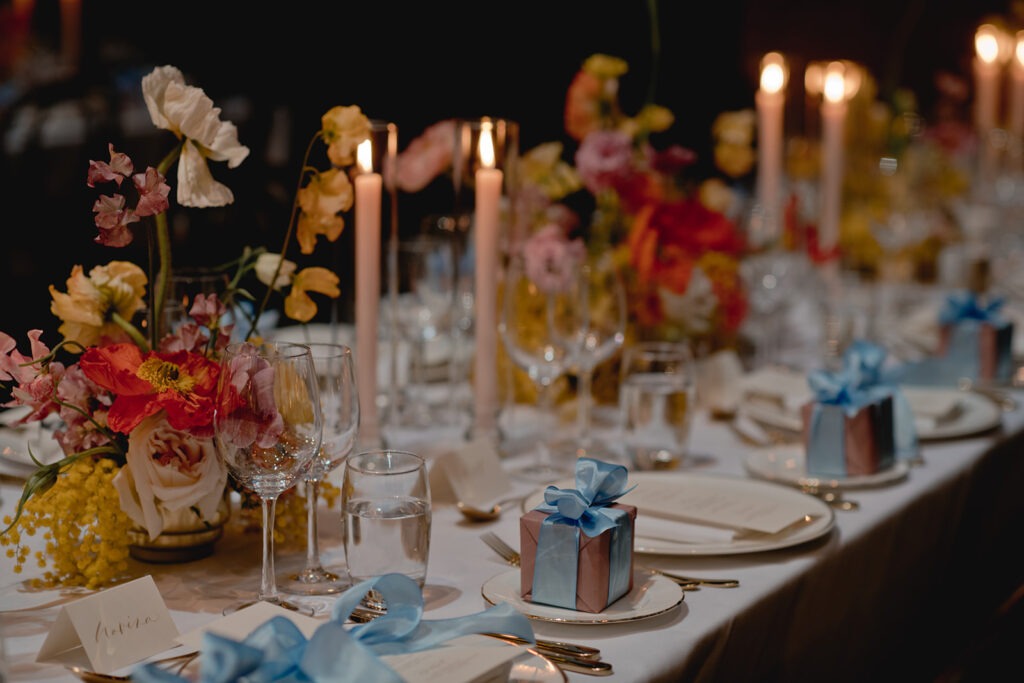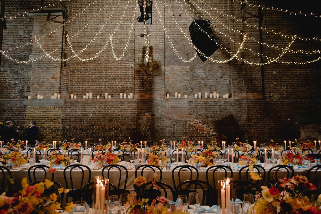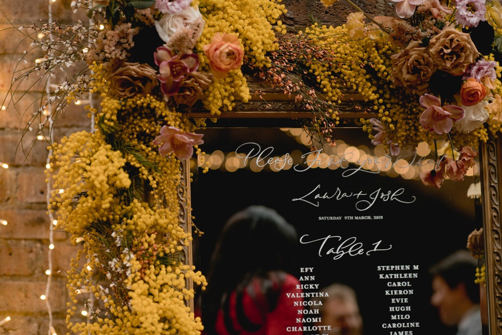 The colour palette was designed to bring out to compliment the London bricks by candle light. As the wedding was taking place in March during peak mimosa season we just had to use it as our base, carefully balancing it with a dash of baby blue.