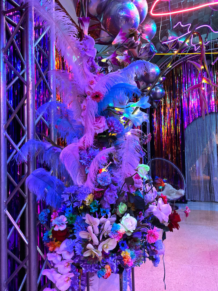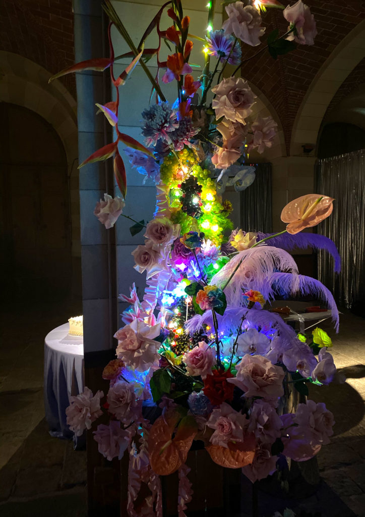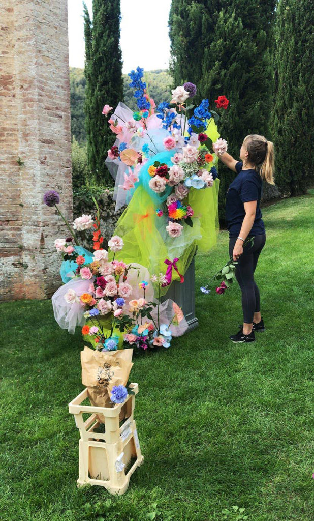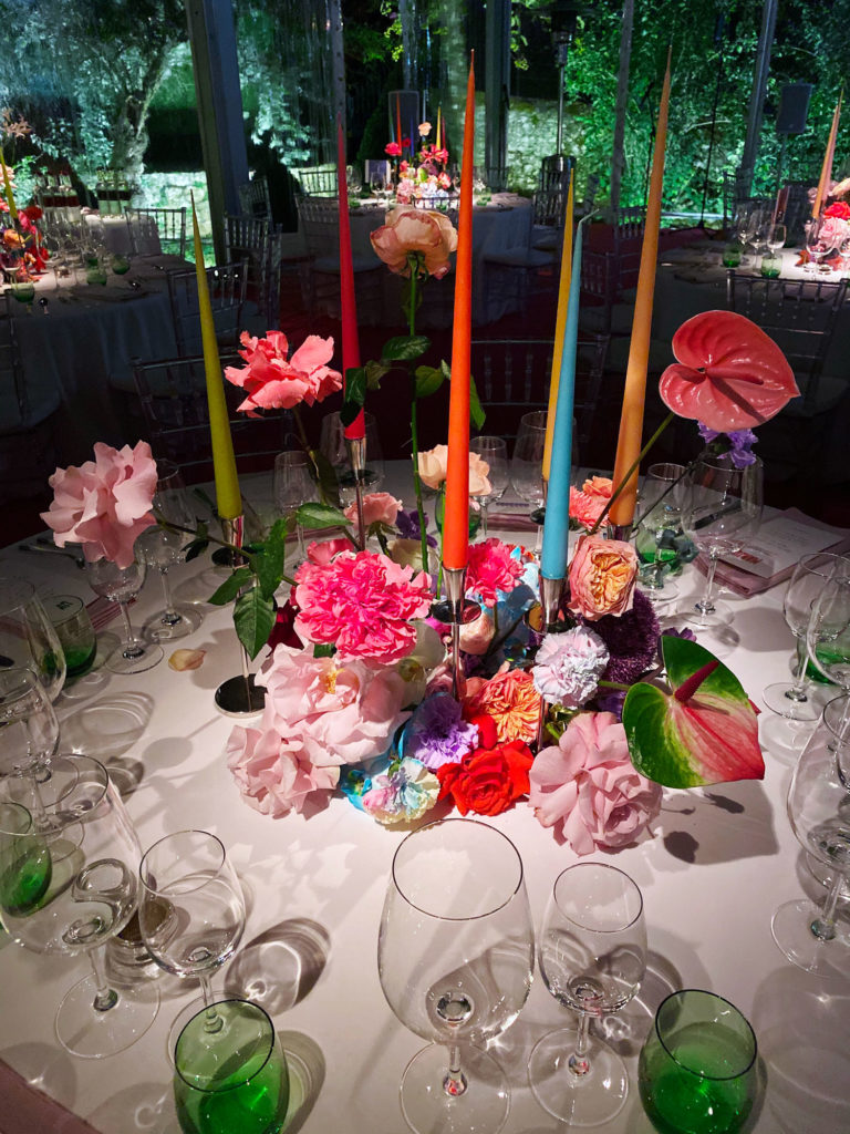 A contemporary wedding design using a mix of bright colourful flowers with unexpected rainbows, illuminations, tulle and tinsel for a super fun London couple. We worked with expert Italian party planner Emily Fitzroy and her team at Bellini Travel to create flowers for this three day celebration in the most beautiful surroundings imaginable.