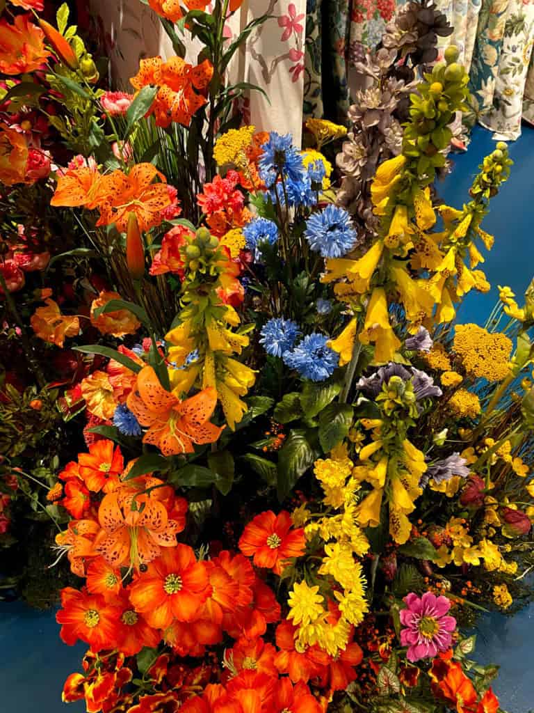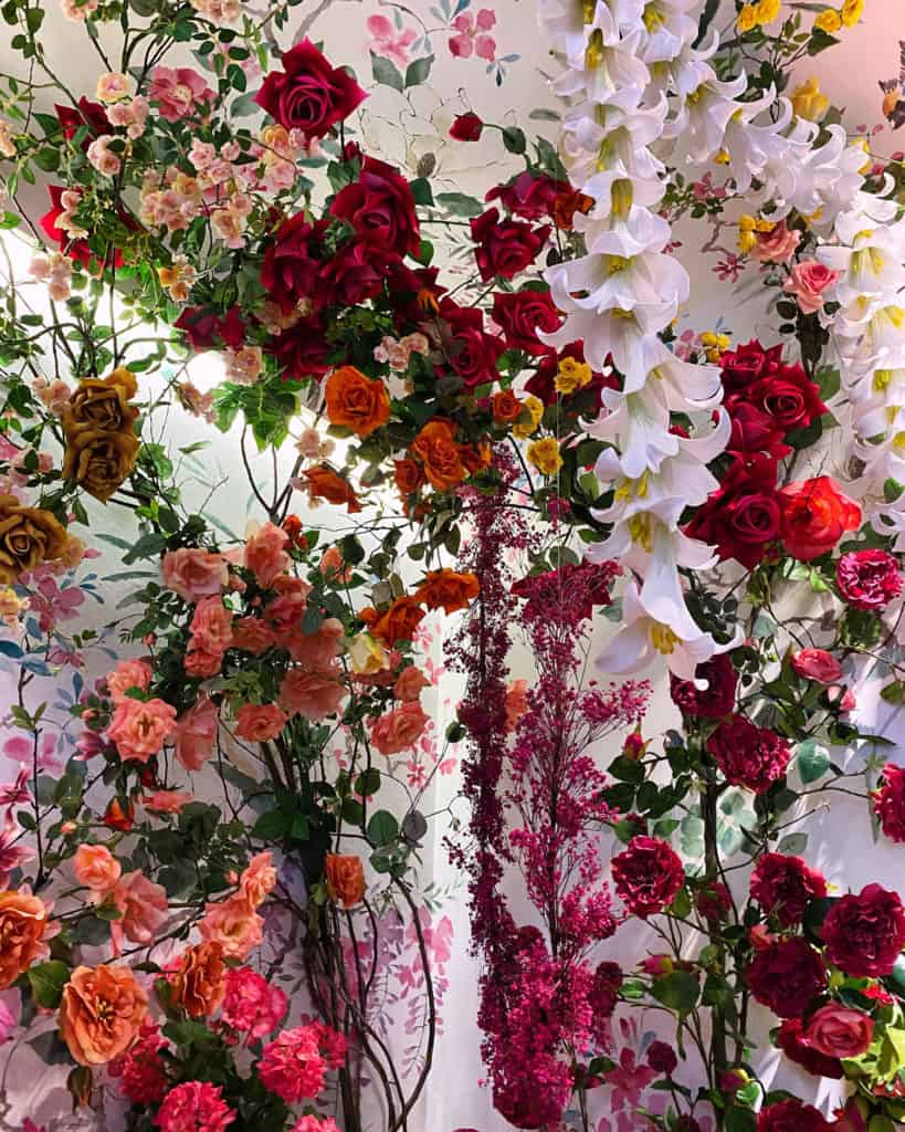 An everlasting installation design using dried and silk flowers created within the Sanderson pop up at London Design Week.
