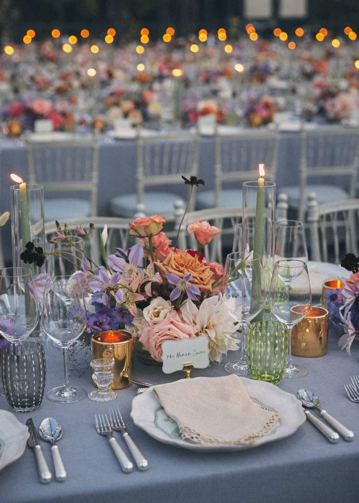 An English summer wedding set in the grounds of stately home Wrotham Park in Hertfordshire. My team and I created large floral installations throughout this beautiful venue. The stones steps and balustrade were flowered with a textured meadow leading from the inside of the house to the wedding reception in large glasshouse structure.