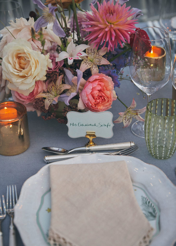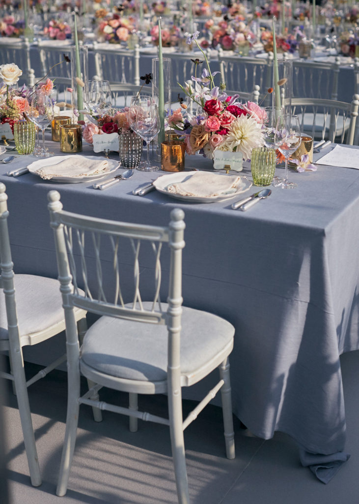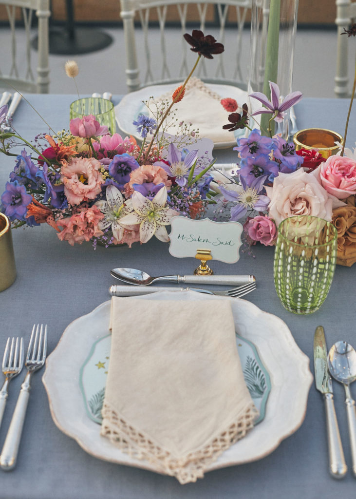 Colours were soft pastels with the addition of pops of deep red chocolate cosmos and raspberry roses.